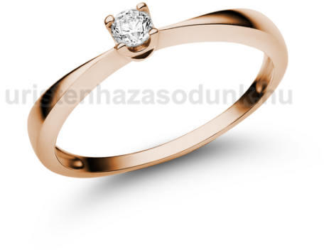 Klasszikus, rozé arany eljegyzési gyűrű 0.13 ct-os gyémánt kővel, szív alakú motívummal a kő foglalat alatt.