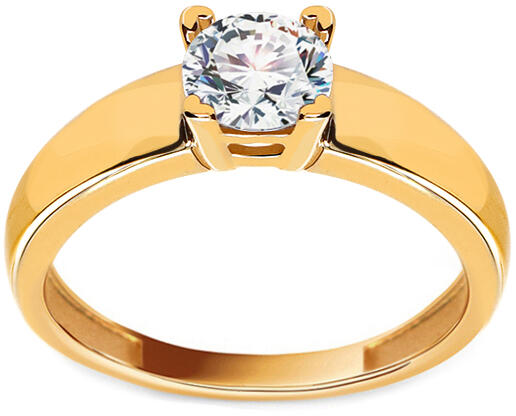 Gyönyörű Evelyn eljegyzési gyűrű, amelynek koronáját egy négyszeresen, kiválóan foglalatba helyezett, ragyogó cirkon uralja. Az arany felületi kezelése magasfényű, a gyűrű méretét a rendelkezésre álló méretek közül választhatja ki.