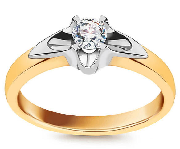 Mindig középső gyémánt eljegyzési gyűrű kombinált aranyból készült. A sima karikát jellegzetes korona díszíti, melyben egy nagyon jó minőségű, 0,150 ct össztömegű, H színű és SI1 tisztaságú gyémánt van beállítva. A gyémántok iZlato® eredetiségi tanúsítvánnyal rendelkeznek.
