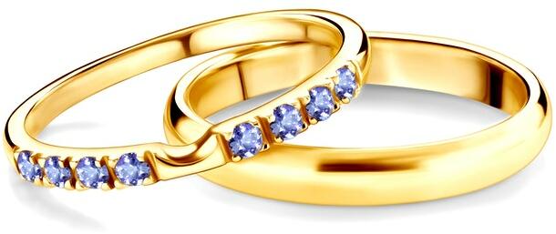 The Journey esküvői karikagyűrűk: arany, tanzanit, félkarikás, 2 mm és 3 mm