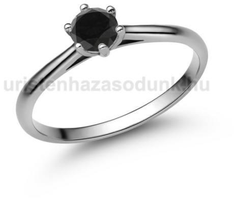Fekete gyémánt köves, szoliter gyűrű fehér arany foglalatban.