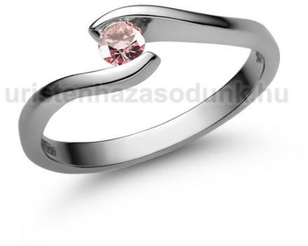 Csavart stílusú, fehér arany eljegyzési gyűrű 1 darab modern csiszolású rózsaszín zafír kővel.