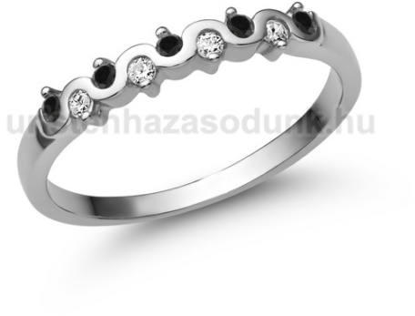 Hullámos, fehér arany eljegyzési gyűrű fekete gyémánt és cirkónia kövekkel.