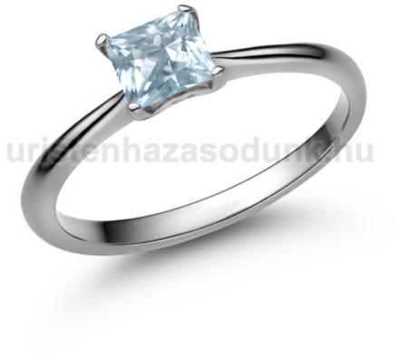 Szögletes csiszolású, akvamarin köves fehér arany eljegyzési gyűrű.