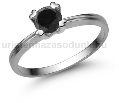 Fehér arany, szoliter gyűrű, fekete gyémánt kővel különleges, szív formájú karmos foglalatban.