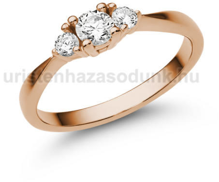 3 köves rozé arany eljegyzési gyűrű, modern stílusban, cirkónia kövekkel.