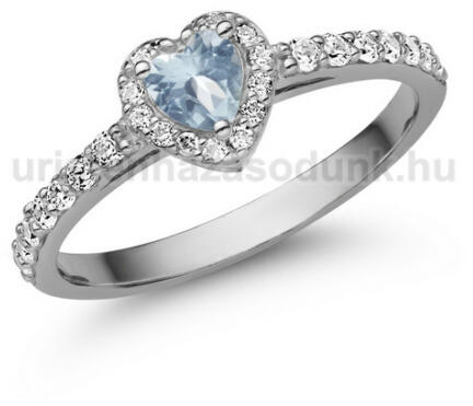 Pazar fehér arany eljegyzési gyűrű akvamarin kővel és cirkónia kövekkel, szív alakú foglalatban.