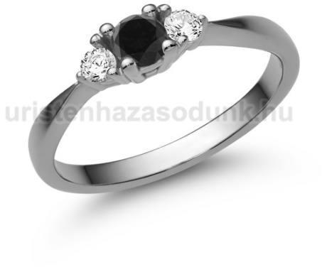 3 köves fehér arany eljegyzési gyűrű, fekete gyémánt kővel középen és 2 darab gyémánt kővel oldalt.