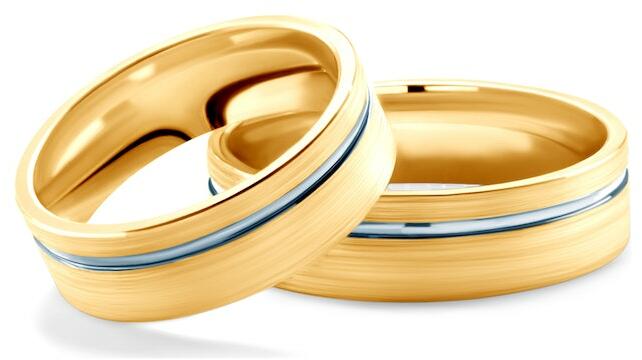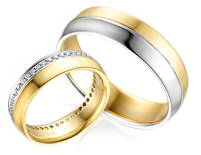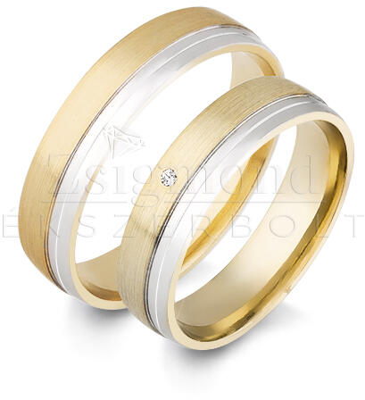 Esküvői karikagyűrűk: kétszínű arany, lapos, 6 mm