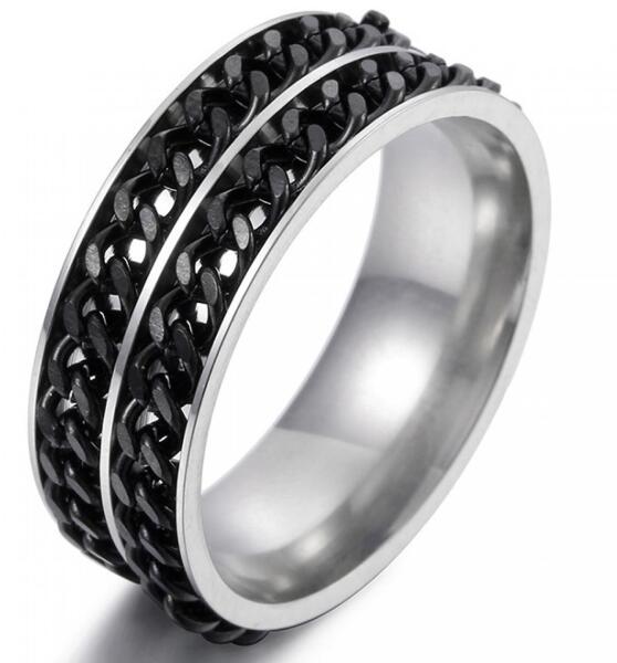 Walker Gyűrű Különleges Walker gyűrű kedvező áron. A gyűrű teljes kerületén két sorban lánc alakú díszítése van. Többféle színkombinációban kapható. Az ékszer nem tartalmaz nikkelt, ezért érzékeny bőrű emberek is viselhetik. Tulajdonságok: A gyűrű mérete: 67mm (kerület) Anyaga: Nemesacél 316L Szín: Fekete Az útmutatót a gyűrű méretének kiválasztásához