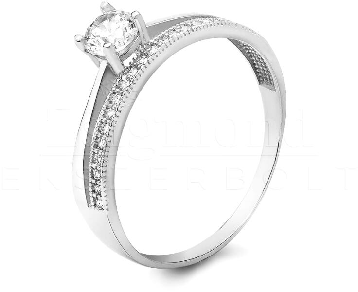 Klasszikus stílusú, fehér arany eljegyzési gyűrű cirkónia kővel.
