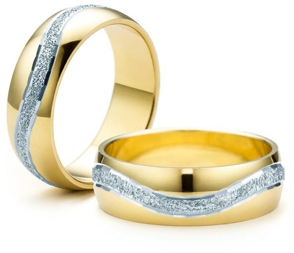 Esküvői karikagyűrűk: kétszínű arany, félkarika, 6 mm