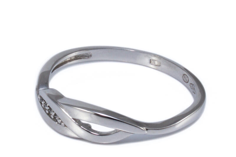 Modern stílusú, kedvelt fazonú, ródiummal bevont, cirkónia kővel ékített, áttört hullámos fehérarany gyűrű.