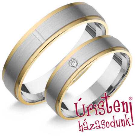 Fehér-sárga arany karikagyűrű gyémánt kővel.