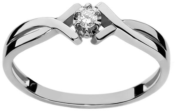 Ez az elegáns fehérarany gyémántgyűrű tökéletes választás azoknak a nőknek, akik szeretik a finom és modern designt időtlen csillogással. A gyűrű 9 karátos fehéraranyból készült, ami gyönyörű hűvös fényt kölcsönöz neki. A gyűrű központi eleme egy kerek, briliáns csiszolású természetes gyémánt, amelynek súlya 0,04 ct. Ez a tekintélyes gyémántgyűrű ideál