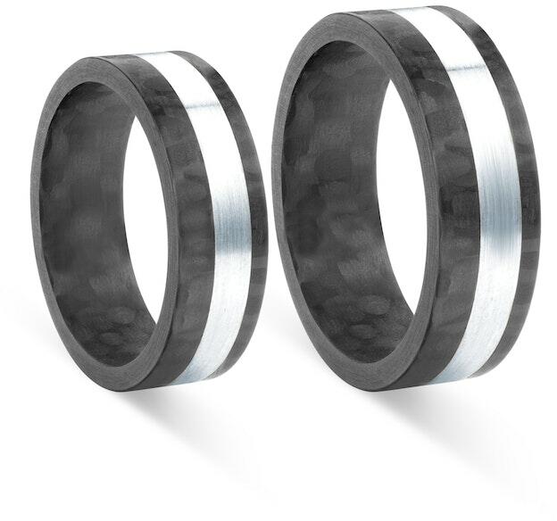 Esküvői karikagyűrűk: karbon és titán, lapos, 6 mm és 7 mm