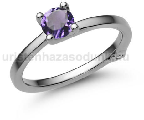 Eljegyzési szoliter gyűrű, ametiszt kővel, a gyűrű sínben egy gyémánt kővel, különleges szív formájú foglalatban.