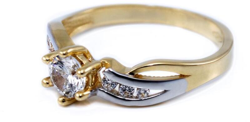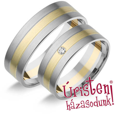 Fehér-sárga arany karikagyűrű gyémánt kővel.