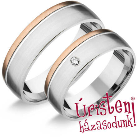 Fehér-rozé arany karikagyűrű gyémánt kővel.