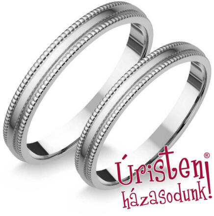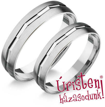 Kő nélküli, fehér arany karikagyűrű, matt és fényes felülettel, különleges véséssel.
