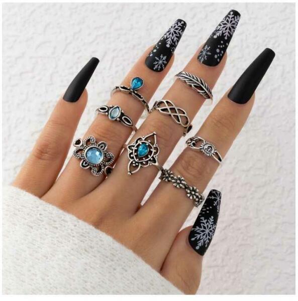 Elegáns és divatos 8 db-os gyűrű szett. Mindennapokra, laza, elegáns és alkalmi öltözethez. Az ár a 8 db gyűrűre értendő. Nem darabár. TULAJDONSÁGOKezüst szín Csiszolt kő anyaga: fémGYŰRŰ MÉRETEK 1 db 46-os 1 db 48-as 1 db 51-es 1 db 52-es 1 db 53-as 2 db 54-es 1 db 55-ösA csomagokban méret eltérések lehetnek.