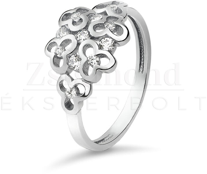 Eljegyzési gyűrű készletről. Az eljegyzési gyűrű cirkónia követ tartalmaz, amelyet 14 K fehér arany ölel körül, így a legjobb minőségű ékszerrel lepheted meg szíved választottját. Ezzel a gyűrűvel szavak nélkül is érzékeltetheted, hogy szerelmed iránta nem tompul, csak úgy, mint ahogy fénye sem.