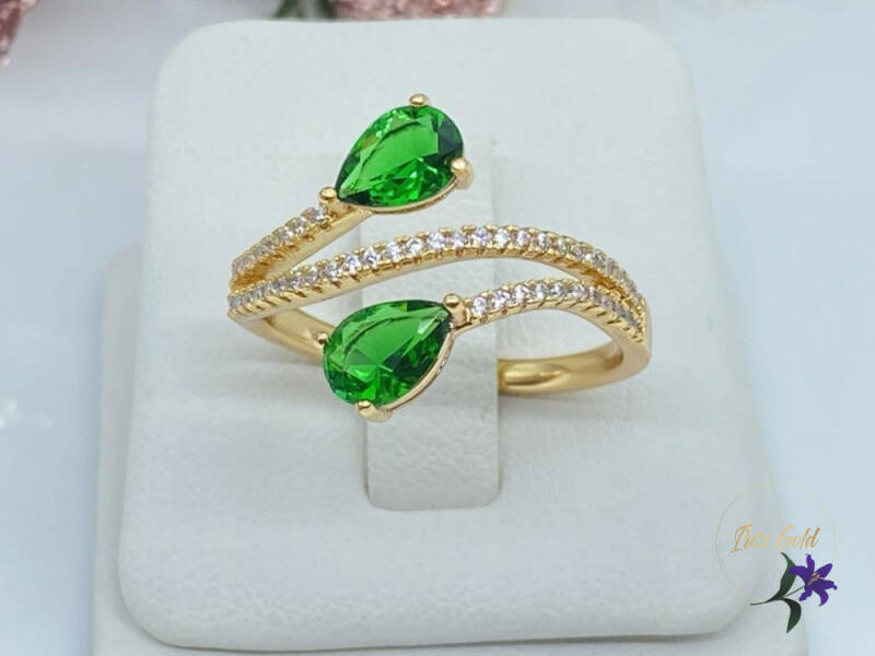 Gyönyörű zöldköves gyűrű Szin:18Kr Szélesség 15mm A forgalmazott divatékszerek alapanyaga nikkel és ólommentes ezért többnyire nem okoznak allergiás tüneteket, nyugodtan hordhatják fémérzékeny emberek is. Általában nem színezik a bőrt és más divatékszerekhez képest nagyságrendekkel jobb kopásállósággal rendelkeznek. A fehér (ezüst) színű ékszerek ugyanezzel az