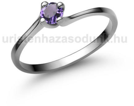 Finom vonalú, fehér arany eljegyzési gyűrű ametiszt kővel.