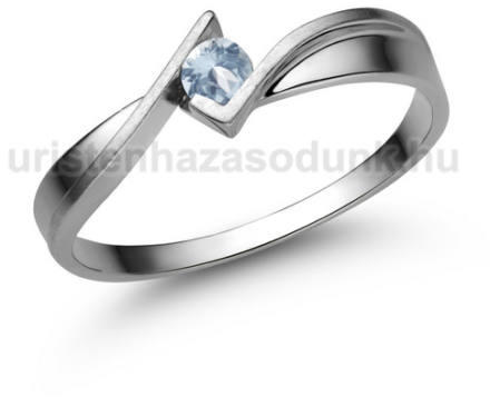 Fehér arany szoliter gyűrű akvamarin kővel, modern, formatervezett foglalatban.