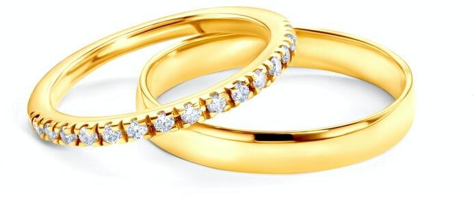 The Light esküvői karikagyűrűk: arany, gyémántok, félkarikás, 1,5 mm és 3 mm