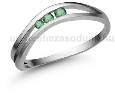 Hullámos fazonú, 3 köves eljegyzési gyűrű smaragd kövekkel.