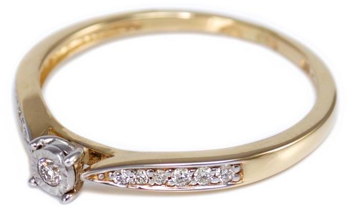 Klasszikus mégis különleges, fejrészén középen nagyobb, vállrészén apró gyémántokkal ékített arany eljegyzési gyűrű.