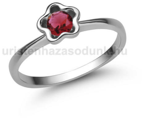 Különleges eljegyzési gyűrű rubin kővel, virágos foglaltban.