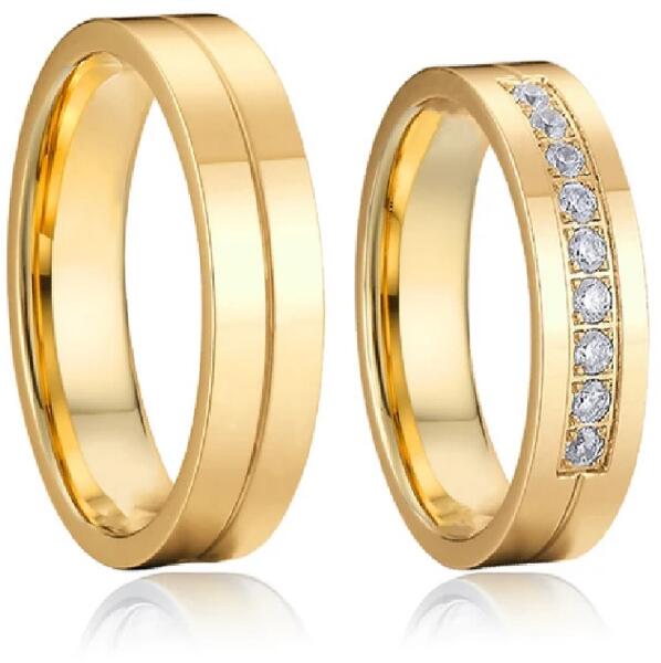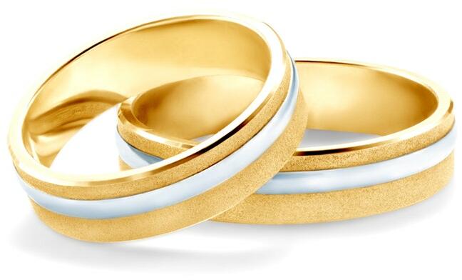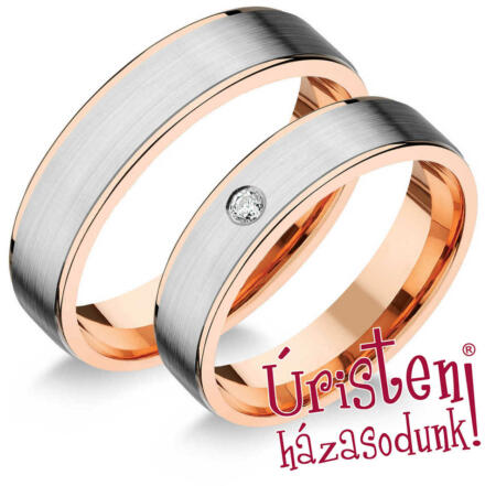 Esküvői karikagyűrűk: kétszínű arany, lapos, 5 mm