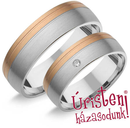 Fehér és rozé arany karikagyűrű cirkónia kővel.