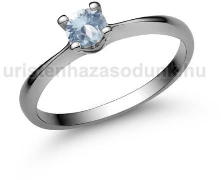 Klasszikus, szoliter gyűrű akvamarin kővel, fehér arany foglalatban.