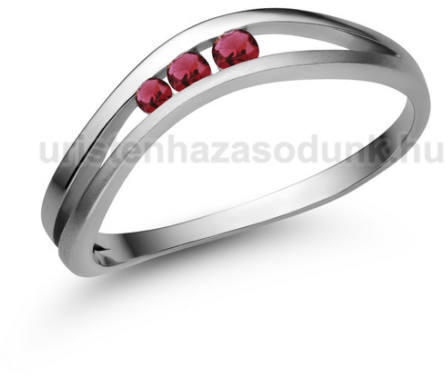 Hullámos fazonú, 3 köves eljegyzési gyűrű rubin kövekkel.