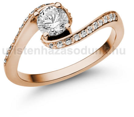 Oldalt köves, csavart fazonú rozé arany eljegyzési gyűrű cirkónia kövekkel.