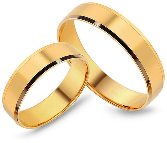 Ezek az 5 mm széles klasszikus karikák sárga aranyból készültek, lapos profillal. A gyűrűk felületkezelése magas polírozás. Válassza ki a gyűrűk méretét egyenként - női és férfi gyűrűk közül. Ha érdekel a gravírozás, a gyűrűkbe bele lehet gravírozni az esküvő dátumát vagy nevét (térítés ellenében).