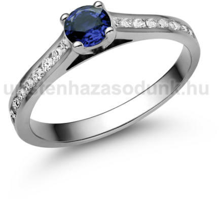 Oldalt köves, modern fehér arany gyűrű kék zafír kővel és gyémánt kövekkel.