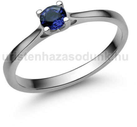 Kék zafír köves, szoliter gyűrű fehér arany foglalatban.