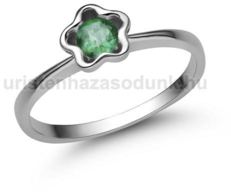 Különleges eljegyzési gyűrű smaragd kővel, virágos foglaltban.
