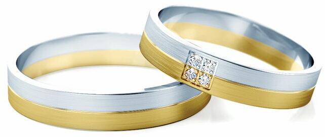 Esküvői karikagyűrűk: kétszínű arany, lapos, 4 mm