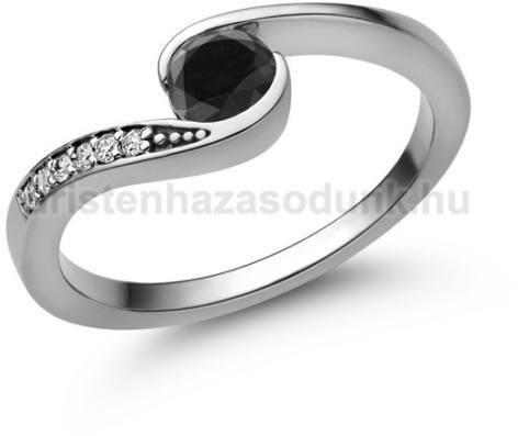 Modern, csavart stílusú fehér arany eljegyzési gyűrű fekete gyémánt kővel és gyémánt kövekkel.