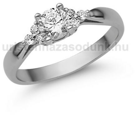Csodaszép, fehér arany eljegyzési gyűrű 1 nagy fehér zafír kővel és 3-3 darab kísérő gyémánt kővel oldalt.