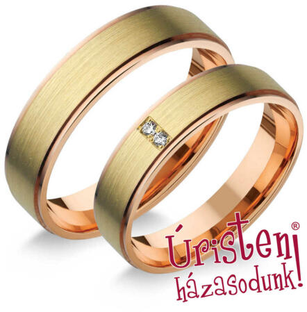 Sárga és rozé arany karikagyűrű, a női gyűrű 2 gyémánt kővel ékítve.