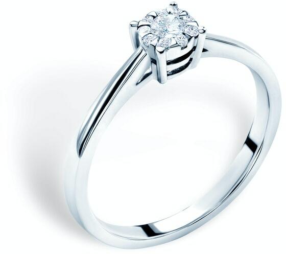 Tizennégy karátos, fehér aranyból készült eljegyzési gyűrű. Tizenegy szikrázó briliáns díszíti, melyek összsúlya 0,030 ct, színe H és tisztasága SI1. A gyűrű díszének szélessége 6 mm, magassága 3 mm. A gyűrű méretét a rendelkezésre álló méretek közül választhatja ki. A kövek az iZlato® eredetiséget igazoló tanúsítvánnyal rendelkeznek.
