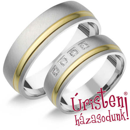 Fehér-sárga arany karikagyűrű gyémánt kövekkel.