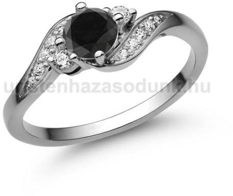 Nagy köves eljegyzési gyűrű, fekete gyémánt kővel középen, oldalt több kisebb cirkónia kővel.