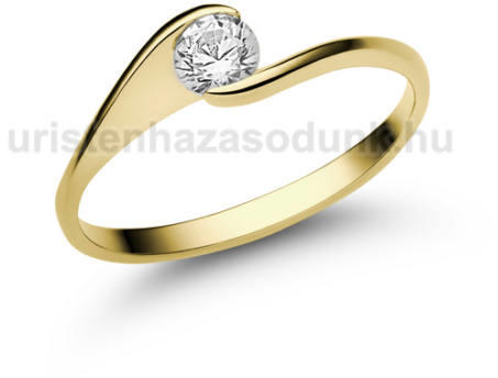 Csavart stílusú, sárga arany eljegyzési gyűrű 0.20 ct-os gyémánt kővel.